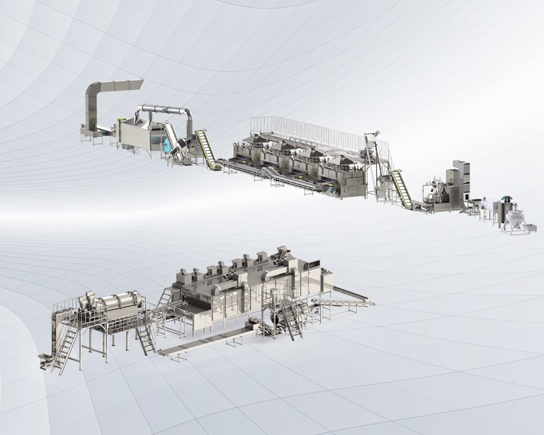 該生產線廣泛應用于花生、青豆、夏果、腰果等堅果仁裹衣烘烤加工。自動化生產,連續(xù)進出,真正實現一人多機,一鍵式操作,減少了人工強度及技術依賴性,保證產品質量穩(wěn)定性。